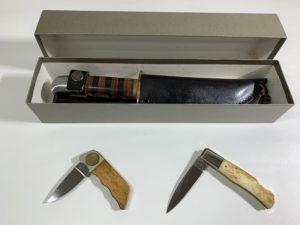 名古屋市にお住いの方より宅配買取のご依頼を頂きました。 人気ナイフ作家、松田菊男氏のH-MINUS、 土居良明作、剣鉈、 コロンビア SA39の3点でした。 いずれのナイフもブレードに研ぎ跡、…