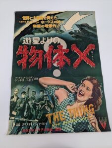 B2判「遊星よりの物体X」映画ポスター買取致しました 本日、SFパニックホラーの名作「遊星よりの物体X(1951)」の B2判映画ポスター買取ご依頼を頂きました。 端々に経年によるヤケやシミ、保管の際のたた…